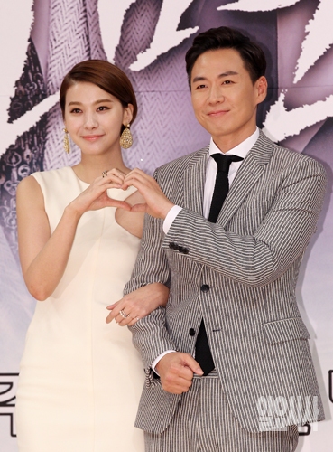 배우 유인영, 연정훈이 19일 오후 서울 양천구 목동 SBS사옥에서 열린 SBS 드라마스페셜 <가면> 제작발표회에서 포즈를 취하고 있다.