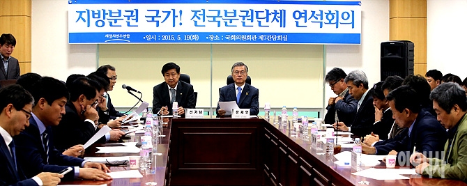 19일, 서울 여의도 국회 의원회관서 새정치민주연합 문재인 대표, 신기남 참좋은정부지방위원장 등이 참석한 가운데 '전국분권단체 연석회의'가 열리고 있다.