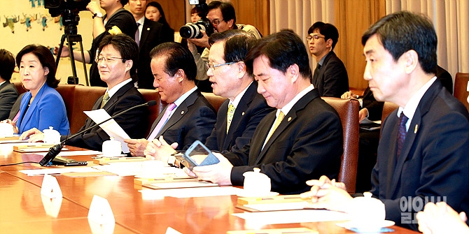 20일, 서울 여의도 국회에서 정의화 국회의장이 반기문 유엔 사무총장 및 여야 대표들과 회동 자리에서 발언하고 있다. (사진공동취재단)