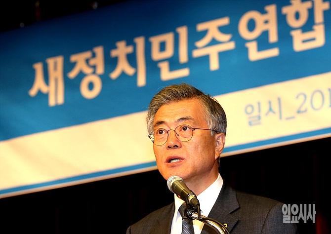20일, 서울 여의도 국회서 열린 새정치민주연합 전국청년위원회 출범식에서 문재인 대표가 축사를 하고 있다.