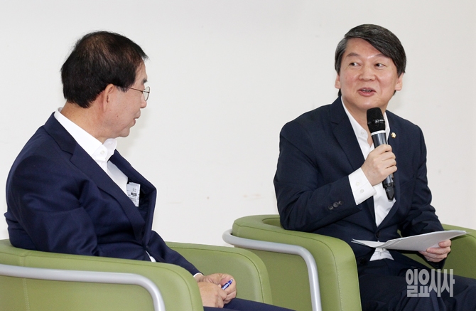 [포토] 박원순-안철수, '남북 경협 주제로 토론'