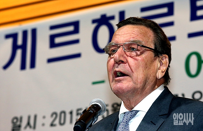 21일, 서울 여의도 전경련회관에서 열린 게르하르트 슈뢰더 전 독일총리가 강연을 하고 있다.