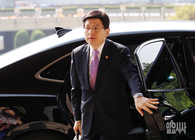 국무총리로 내정된 황교안 법무부 장관이 22일 오전 정부과천청사로 출근하고 있다.