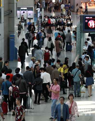 석가탄신일 연휴를 앞둔 22일 오후 인천국제공항이 출국하려는 사람들로 붐비고 있다.