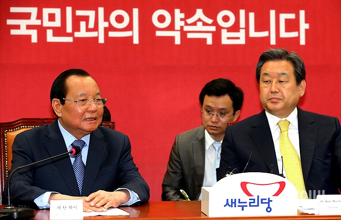 26일, 서울 여의도 국회 새누리당 대표실에서 베트남 레탄하이 호치민 당서기가 새누리당 김무성 대표를 예방한 자리에서 잠시 발언하고 있다.
