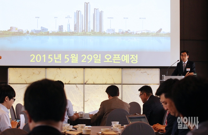 이창렬 한화건설 상무가 26일 오전 서울 중구 프라자호텔에서 열린 한화건설 '킨텍스 꿈에그린 기자간담회'에서 인사말을 하고 있다. 한화건설은 경기 고양시 일산서구 대화동 킨텍스 1단계 C2블록에 지어질 '킨텍스 꿈에그린’의 모델하우스를 오는 29일 개관하고 분양을 시작한다.