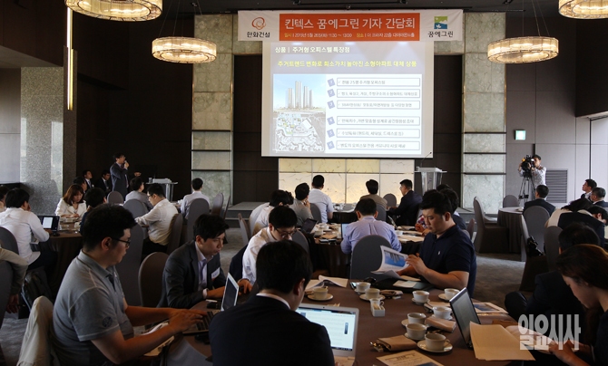 전용운 엠비엔홀딩스 영업본부장이 26일 오전 서울 중구 프라자호텔에서 열린 한화건설 '킨텍스 꿈에그린 기자간담회'에서 취재진의 질문에 답하고 있다. 한화건설은 경기 고양시 일산서구 대화동 킨텍스 1단계 C2블록에 지어질 '킨텍스 꿈에그린’의 모델하우스를 오는 29일 개관하고 분양을 시작한다.