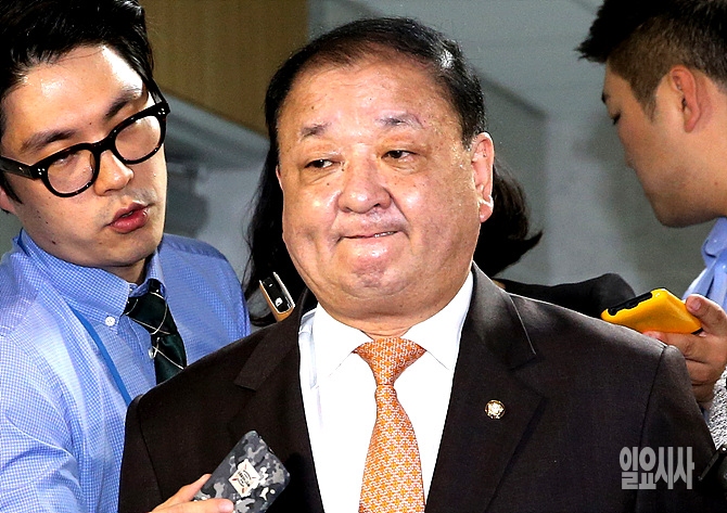 26일, 서울 여의도 국회에서 강창일 새정치민주연합 윤리심판원장이 '정청래 막말'과 관련한 징계결정 회의에 참석하기 위해 이동하는 가운데 취재진의 질문을 받고 잠시 어금니를 깨물고 있다.
