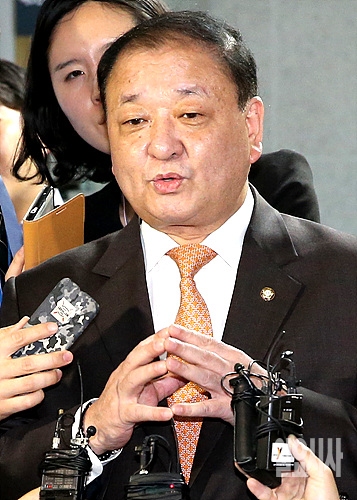 26일, 서울 여의도 국회에서 강창일 새정치민주연합 윤리심판원장이 '정청래 막말'과 관련한 징계결정 회의에 참석하기 위해 이동하는 가운데 취재진의 질문에 답하고 있다.