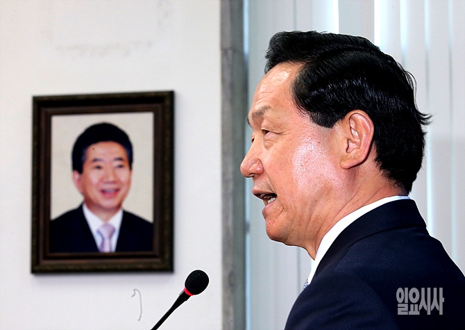 27일, 김상곤 새정치민주연합 혁신위원장이 서울 여의도 국회 새정치민주연합 당 대표실서 기자회견을 갖고 있다. 이날 김 위원장은 당의 앞길을 막는 세력은 용납하지 않을 것이며 추후 계파 모임은 중지할 것을 요구했다.