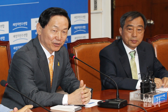 새정치민주연합 김상곤 혁신위원장이 28일 오전 서울 여의도 국회에서 열린 기초단체장협의회 정책간담회에서 발언하고 있다.