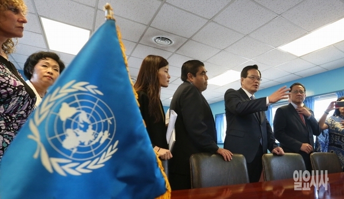 3일 오전 믹타(MIKTA) 회의 참석차 방한한 각국의 국회의장들이 한반도 남북 분단 현실을 보기 위해 판문점남북회담장을 공동시찰하고 있다. 믹타(MIKTA)는 우리나라 주도로 설립된 중견국 협의체로 멕시코와 인도네시아, 한국, 터키, 호주 등 5개국이 회원국이다.(사진공동취재단)