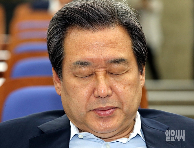 8일, 서울 여의도 국회서 열린 대법관 임명동의안 처리 관련 새누리당 의원총회 도중 김무성 대표가 고민이 많은 듯 눈을 질끈 감고 생각에 빠져 있다.