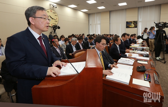 최성준 방송통신위원장이 10일 오전 서울 여의도 국회에서 열린 국회 미래창조과학방송통신위원회 국정감사에서 보고를 하고 있다.