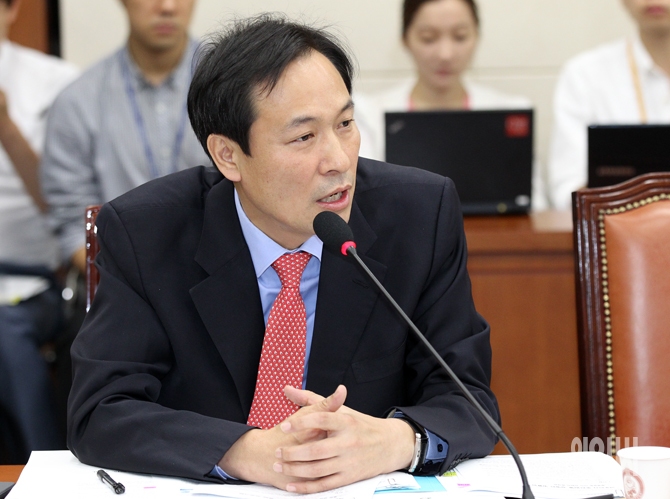 우상호 새정치민주연합 의원이 10일 오전 서울 여의도 국회에서 열린 국회 미래창조과학방송통신위원회 국정감사에서 질의를 하고 있다.