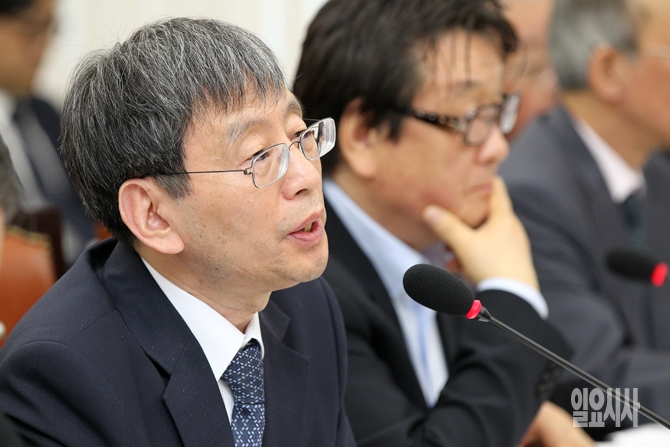 박효종 방송통신심의위원장이 10일 오전 서울 여의도 국회에서 열린 국회 미래창조과학방송통신위원회 국정감사에서 여야의원들의 질의에 답변하고 있다.