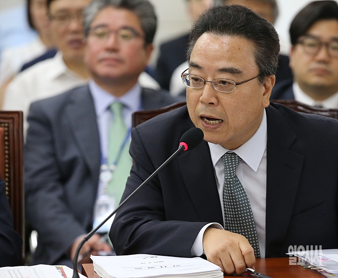 10일, 서울 여의도 국회서 열린 미래창조과학부 국정감사에서 이석우 시청자미디어재단 이사장이 한 의원의 질의에 답변하고 있다.