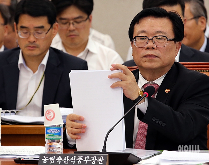 10일, 서울 여의도 국회 농림축산식품위원회 회의실에서 열린 농림축산식품부 국정감사에서 이동필 농림축산식품부장관이 의원들의 질의에 귀 기울이고 있다.