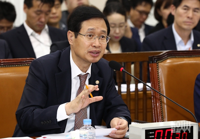 김용희 중앙선거관리위원회 사무총장이 11일 오전 서울 여의도 국회에서 열린 국회 안전행정위원회 국정감사에서 여야 의원들의 질의에 답변하고 있다.