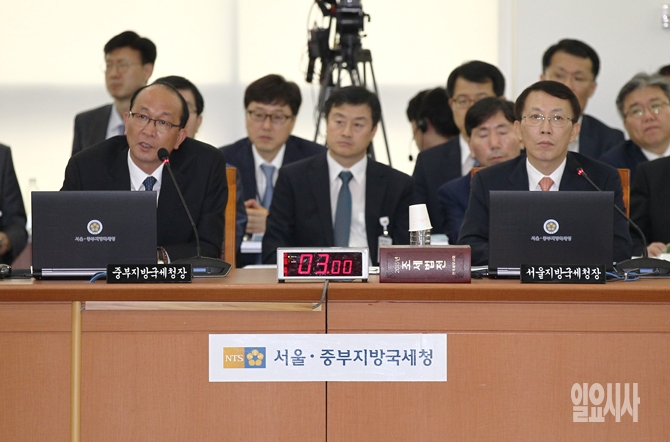 김재웅 중부지방국세청장(왼쪽)과 김연근 서울지방국세청장이 11일 오후 서울 종로구 서울지방국세청에서 열린 국회 기획재정위원회 국정감사에 참석해있다.