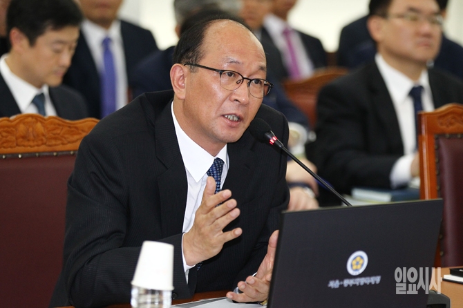 김재웅 중부지방국세청장이 11일 오후 서울 종로구 서울지방국세청에서 열린 국회 기획재정위원회 국정감사에서 여야 의원들의 질의에 답변하고 있다.