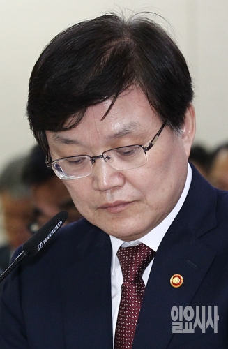 최양희 미래창조과학부 장관이 14일 오전 경기도 정부과천종합청사에서 열린 국회 미래창조과학방송통신위원회의 미래창조과학부 등에 대한 국정감사에서 생각에 잠겨 있다.