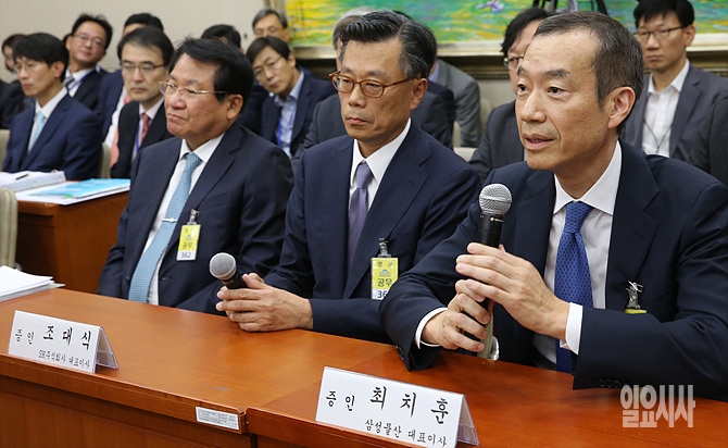 14일, 서울 여의도 국회서 열린 금융위원회 등에 대한 정무위원회 국정감사에 증인으로 출석한 최치훈 삼성물산 대표가 의원들의 질의에 답변하고 있다.