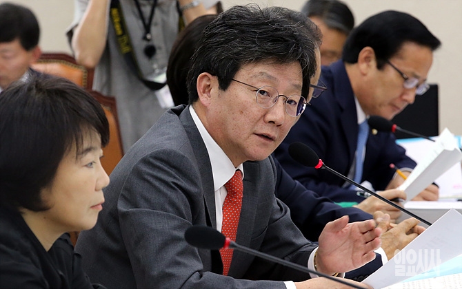 14일, 서울 여의도 국회서 열린 병무청 등 국방위원회에 대한 국정감사 도중 새누리당 유승민 의원이 박창명 병무청장에게 질의하고 있다.