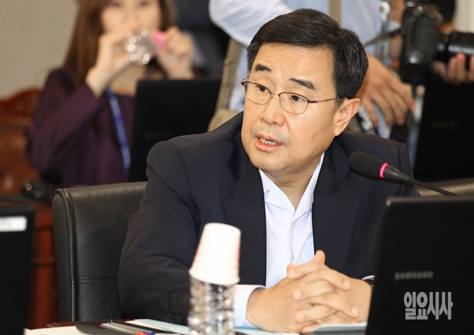 김정훈 새누리당 의원이 15일 오전 서울 여의도 금융감독원에서 열린 국회 정무위원회의 금융감독원에 대한 국정감사에서 질의를 하고 있다.