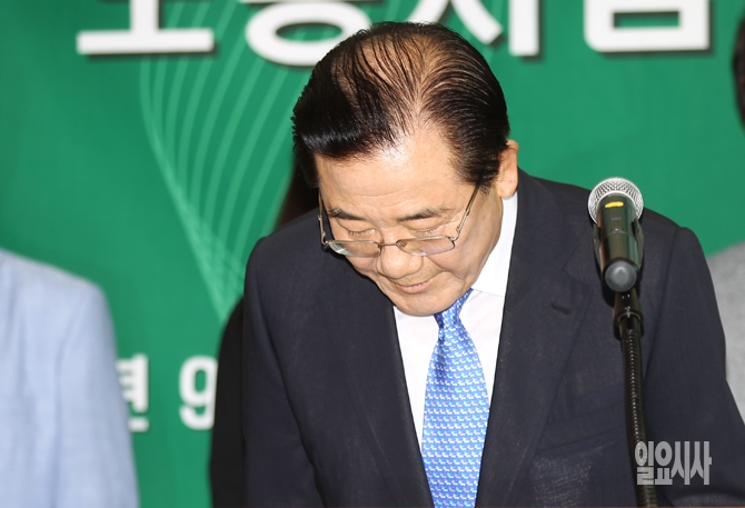 박준영 전 전남도지사가 15일 오전 서울 여의도 서울시티클럽 컨벤션홀에서 열린 신민당 창당준비선언 기자회견에서 인사를 하고 있다.