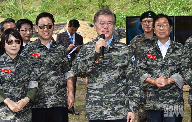 15일, 인천시 옹진군 연평도 해병대 부대를 방문한 국회 국방위(위원장 정두언) 문재인 의원이 군장병들을 치하하고 있다. (사진공동취재단)