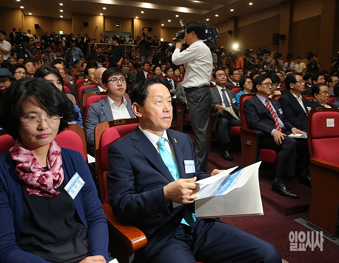16일, 서울 여의도 국회 의원회관서 열린 새정치민주연합 제2차 중앙위원회에 김상곤 혁신위원장이 회의를 지켜보고 있다.