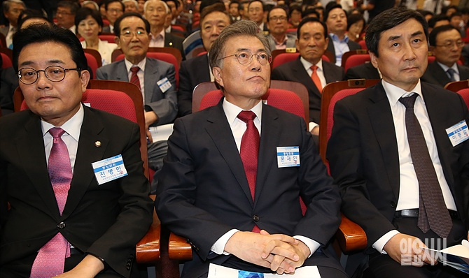 16일, 서울 여의도 국회 의원회관서 열린 새정치민주연합 혁신위원회가 제시한 혁신안 의결을 위해 제2차 중앙위원회 자리에 문재인 새정치민주연합 대표, 이종걸 원내대표, 전병헌 최고위원 등 지도부가 초조한 표정을 짓고 있다.