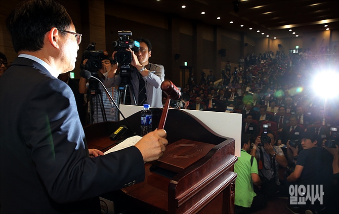 [포토] 의사봉 두드리는 김성곤 중앙위의장