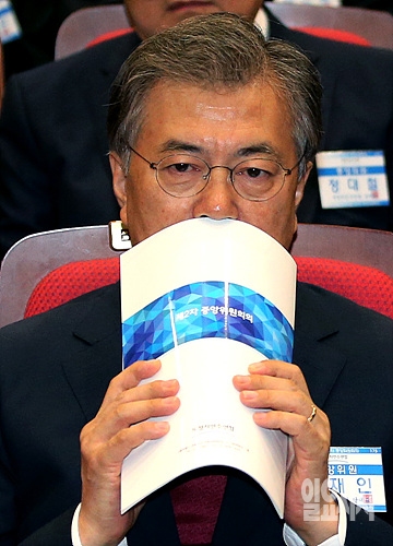 16일, 서울 여의도 국회 의원회관서 열린 새정치민주연합 제2차 중앙위원회 도중 문재인 새정치민주연합 대표가 심각한 표정을 짓고 있다.