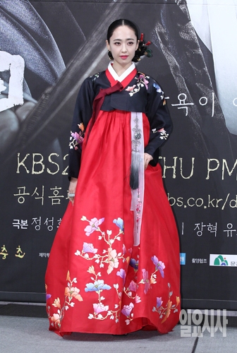 배우 김민정이 16일 오후 서울 강남구 임피리얼 팰리스 호텔에서 열린 KBS특별기획드라마 <장사의 神-객주 2015> 제작발표회에서 포토타임을 갖고 있다.