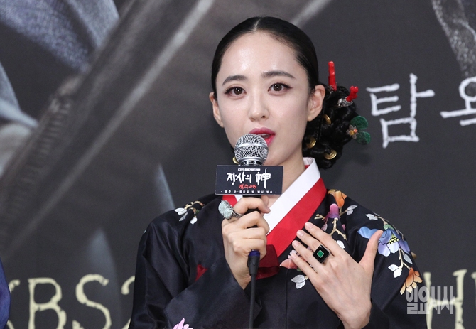 배우 김민정이 16일 오후 서울 강남구 임피리얼 팰리스 호텔에서 열린 KBS특별기획드라마 <장사의 神-객주 2015> 제작발표회에서 기자들의 질문에 답변하고 있다.