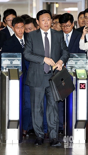 17일, 서울 여의도 국회 정무위원회 국정감사 출석을 위해 신동빈 롯데그룹 회장 등이 본청 출입구를 통해 입장하고 있다.