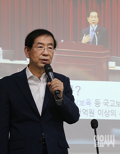 17일, 서울 중구 서울시청 간담회장에서 박원순 서울시장 초청 세종포럼 토론회가 열린 가운데, 박 시장이 발언하고 있다.