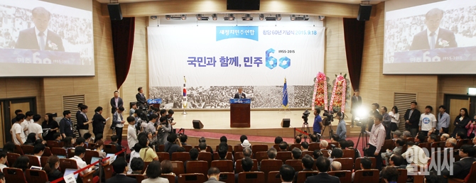 18일 오전 서울 여의도 국회의원회관에서 새정치민주연합 창당 60주년 기념식이 열리고 있다.
