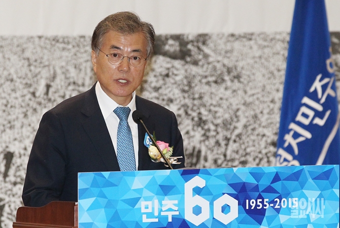 문재인 새정치민주연합 대표가 18일 오전 서울 여의도 국회의원회관에서 열린 새정치민주연합 창당 60주년 기념식에서 인사말을 하고 있다.