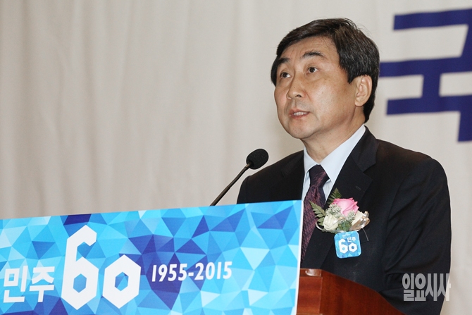 이종걸 새정치민주연합 원내대표가 18일 오전 서울 여의도 국회의원회관에서 열린 새정치민주연합 창당 60주년 기념식에서 인사말을 하고 있다.