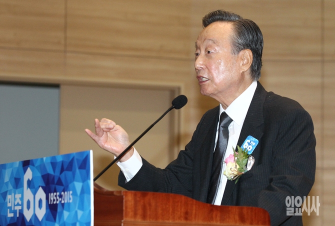 권노갑 새정치민주연합 상임고문이 18일 오전 서울 여의도 국회의원회관에서 열린 새정치민주연합 창당 60주년 기념식에서 축사를 하고 있다.