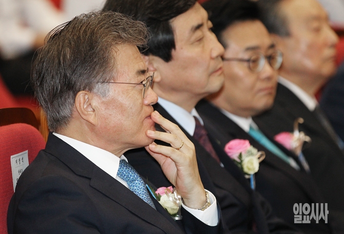 [포토] 축사 듣는 문재인 대표