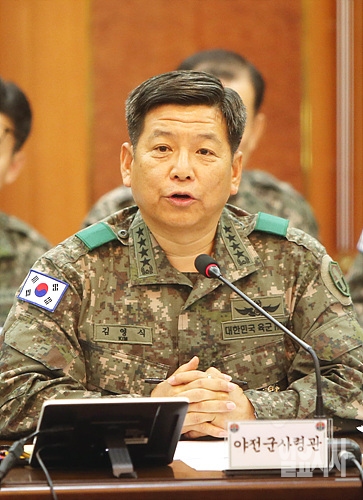 18일, 강원도 원주시 육군 제1야전군사령부서 열린 국회 국방위원회 국정감사에서 김영식 야전군사령관이 의원들의 질의에 답변하고 있다.