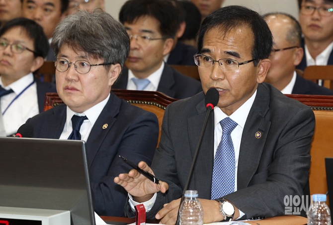김낙회 관세청장이 18일 오후 서울 여의도 국회에서 열린 국회 기획재정위원회 국정감사에서 여야 의원들의 질의에 답변을 하고 있다.