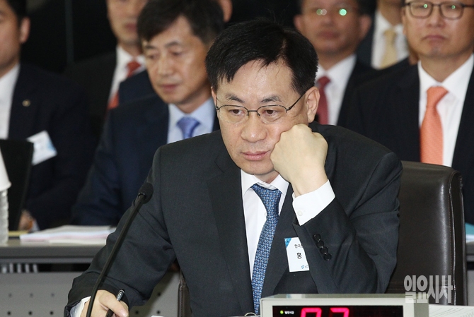 홍기택 KDB산업은행 회장이 21일 오전 서울 여의도 산업은행에서 열린 국회 정무위원회 국정감사에서 생각에 잠겨 있다.