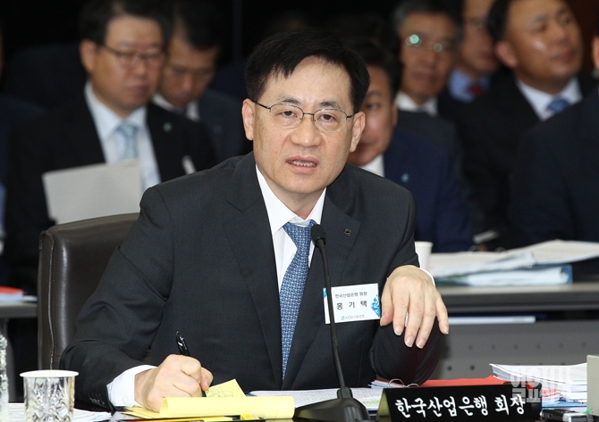 홍기택 KDB산업은행 회장이 21일 오전 서울 여의도 산업은행에서 열린 국회 정무위원회 국정감사에서 여야 의원들의 질의에 답변하고 있다.