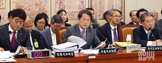 21일, 서울 여의도 국회 교육문화체육관광위원회 회의실서 조희연 서울시교육감, 이재정 경기도교육감 등이 출석한 가운데, 국회 교문위 국정감사가 열리고 있다.