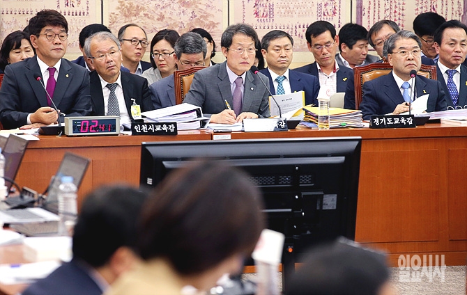21일, 서울 여의도 국회 교육문화체육관광위원회 회의실서 열린 국회 교문위 국정감사에서 조희연 서울시교육감이 의원들의 질의에 집중해 듣고 있다.